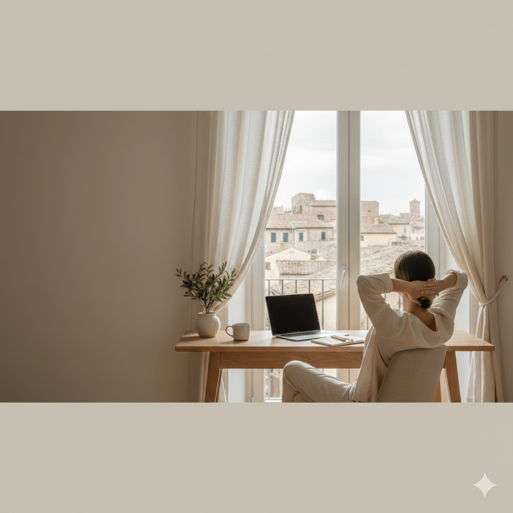 Non ti prometto scorciatoie. Ti prometto metodo, chiarezza e un percorso sostenibile: quello che funziona quando la tua vita è già piena (e non hai nessuna intenzione di riempirla di ansia).